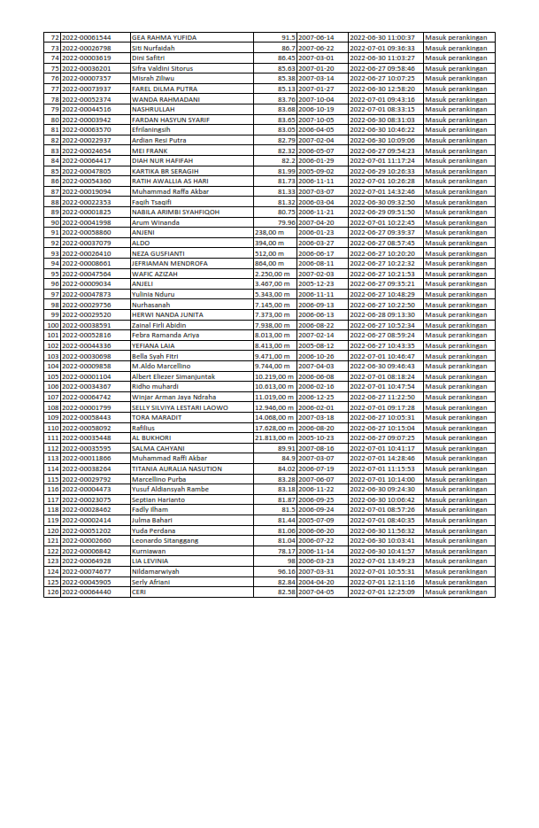 PERANGKINGAN PPDB 2022 SMAN 1 BANDAR PETALANGAN