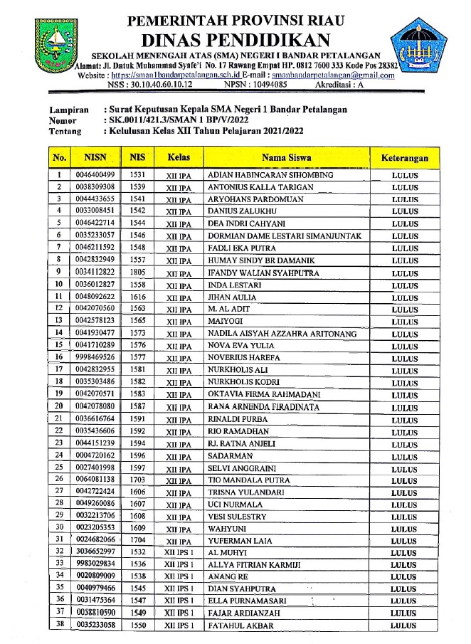 SK Kelulusan Kelas XII TP. 2021-2022
