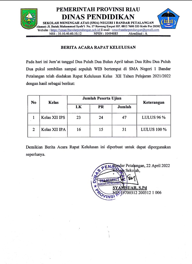 Hasil Rapat MKKS SMA se-Kabupaten Pelalawan pada hari kamis tanggal 13 Januari 2022 di SMAN 1 Ukui bahwa mulai hari Senin tanggal 17 Januari 2020 sud...